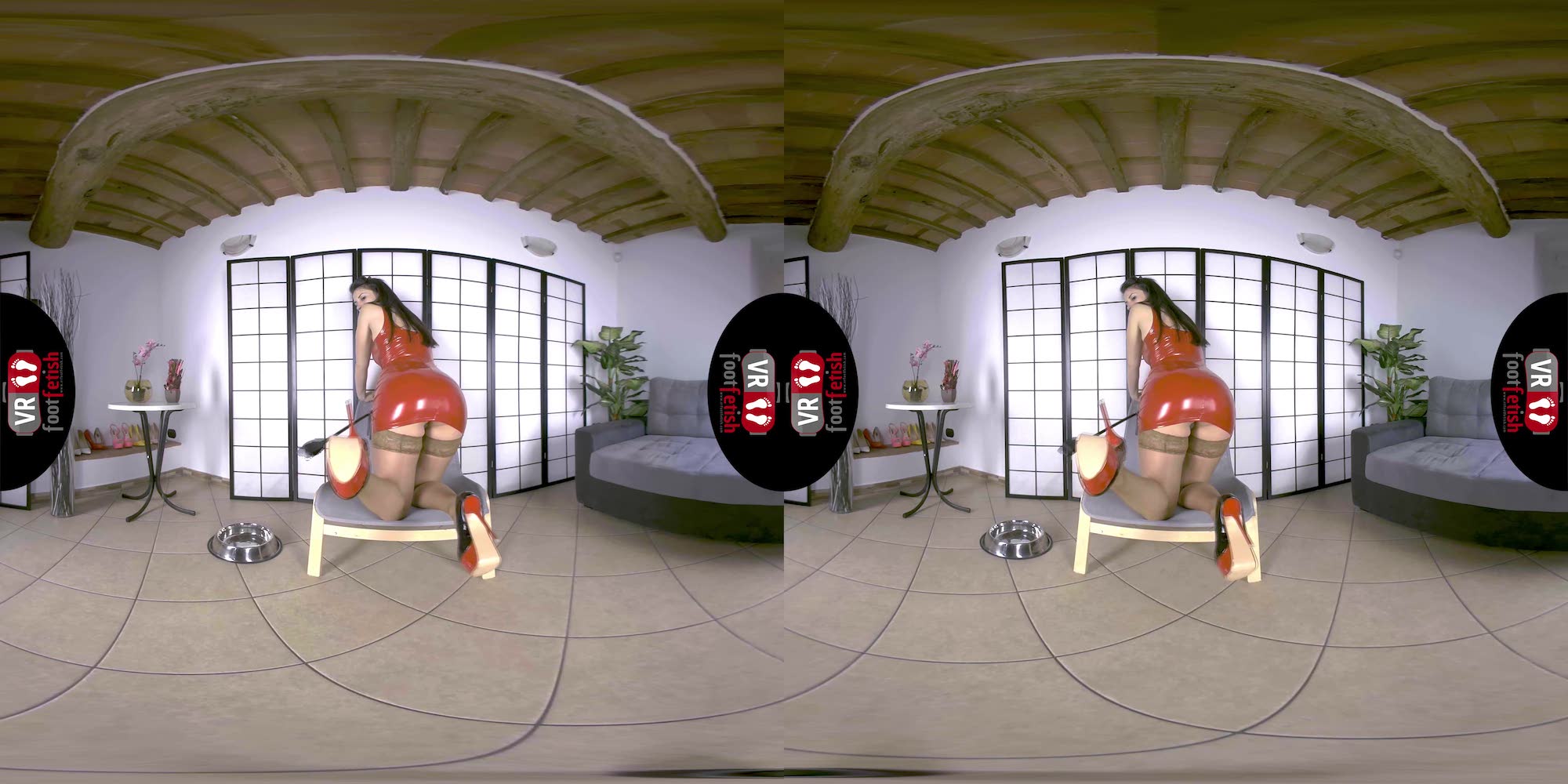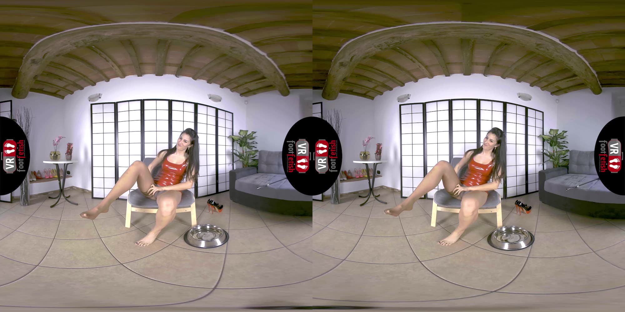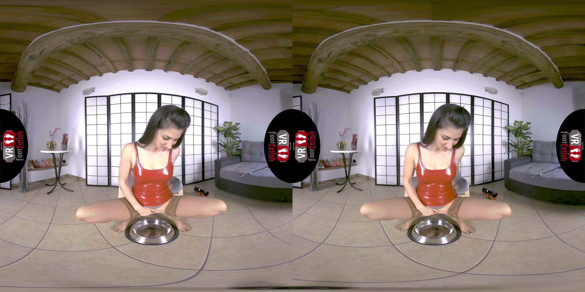 Talk about a beautiful combination of spicy and kinky encounters. Lilian truly delivers the best. In her red latex dress, beige stockings, and chunky stripper heels, this salacious brunette with a tall frame exudes dominance. Using the riding crop, she traces the entrancing curves of her long toned legs while sending piercing stares. Lilian teases her imaginary lover with her perfectly sculpted ass, worthy of being spanked with bare hands or a riding crop. This fuckable hottie discards her heels and flaunts her long toes and cold soles. However, her kinkiness didn’t stop there. Lilian places a dog bowl below her, squats on top, and pisses all over it. To end things on a better note, she removes her stocking, sniffs it, and rubs it against her mound. Lilian is the exact fantasy maker of any piss-lover and foot-enthusiast.