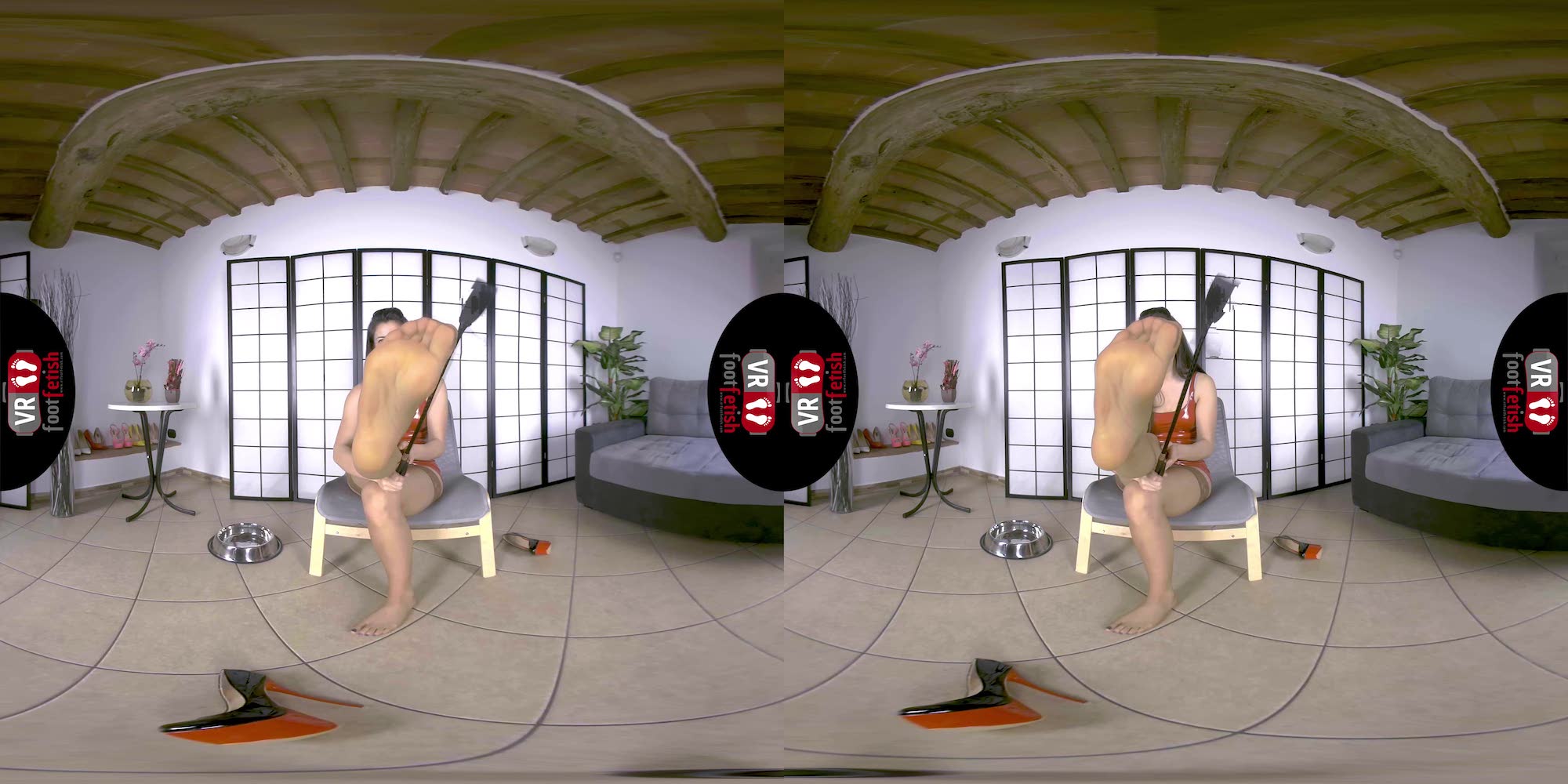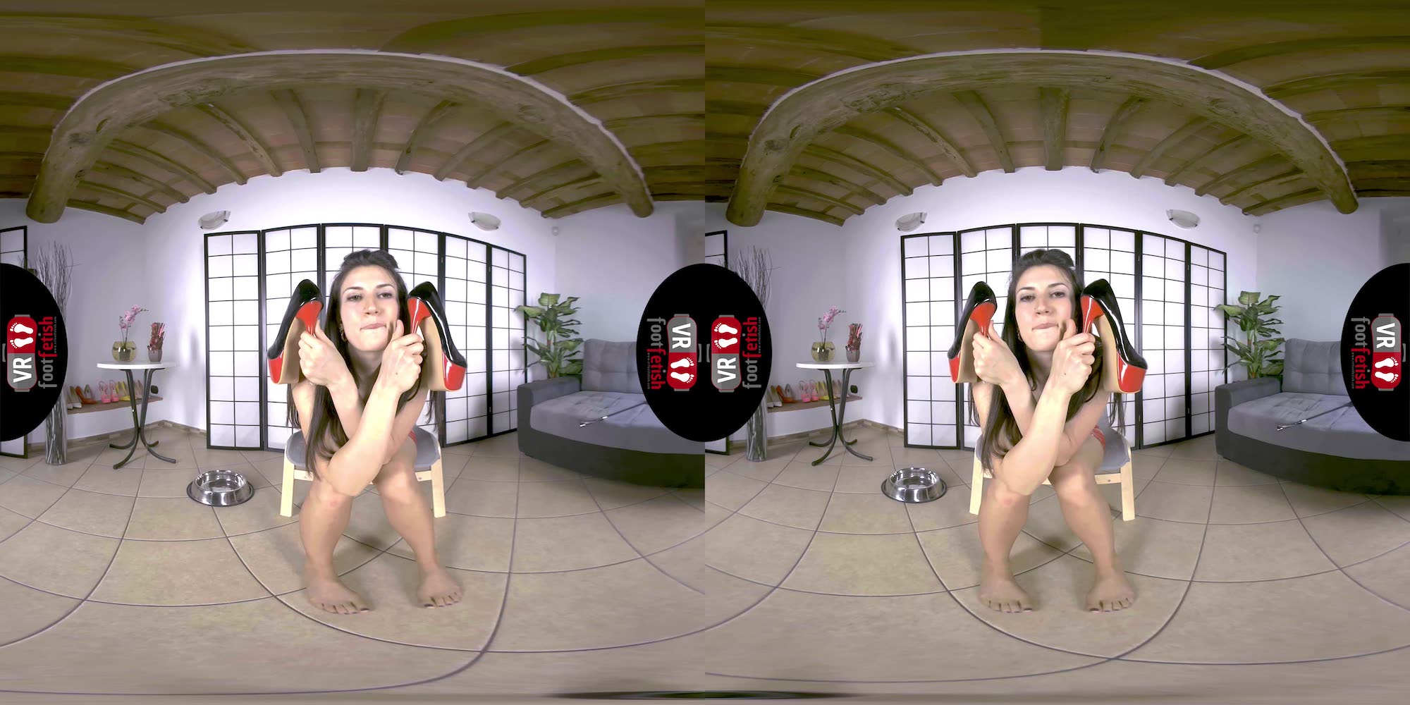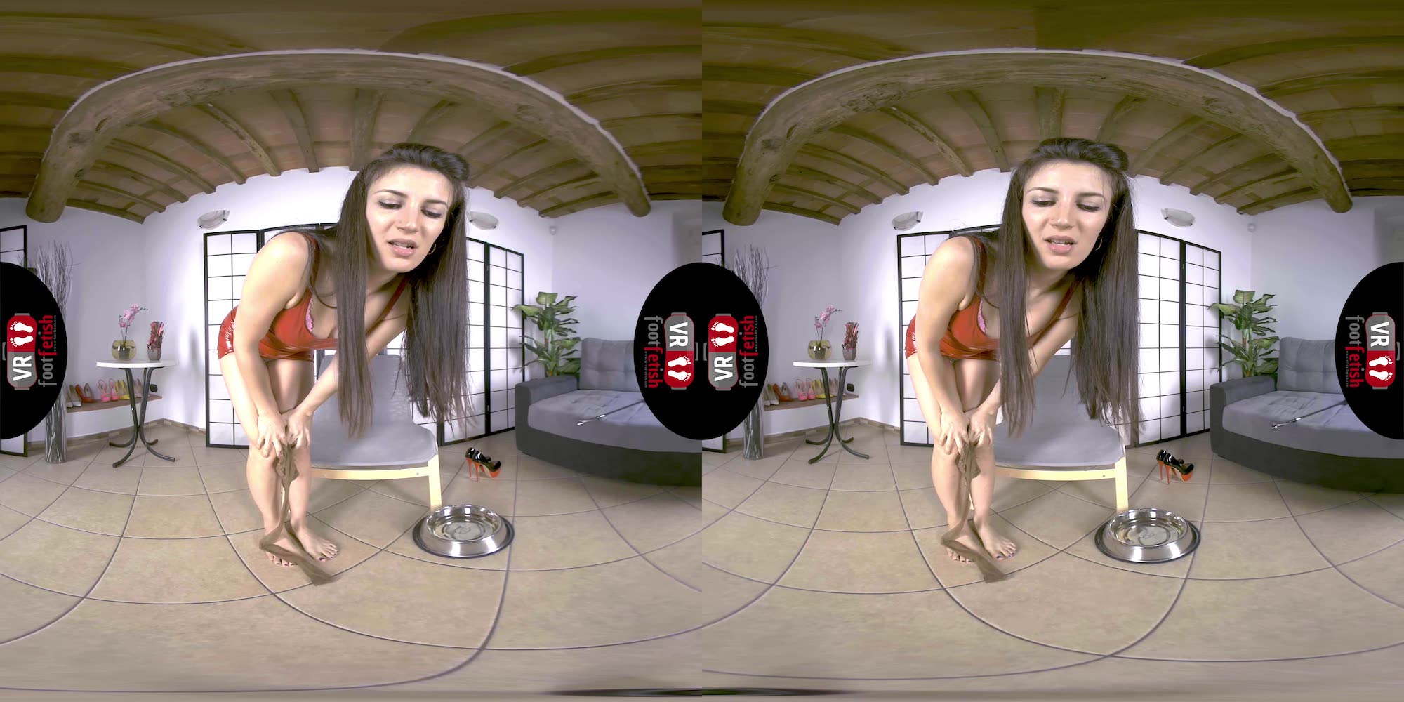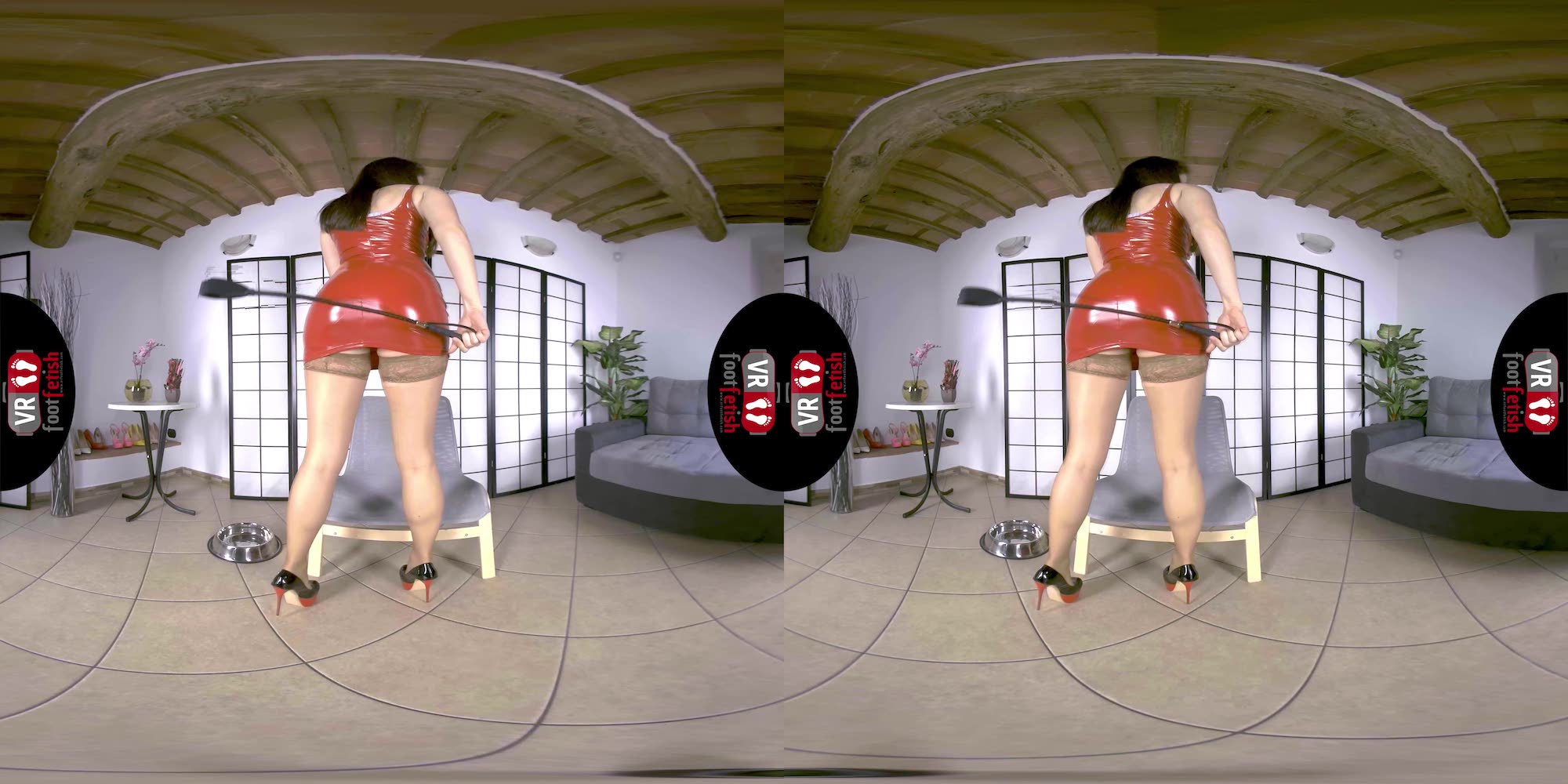 Talk about a beautiful combination of spicy and kinky encounters. Lilian truly delivers the best. In her red latex dress, beige stockings, and chunky stripper heels, this salacious brunette with a tall frame exudes dominance. Using the riding crop, she traces the entrancing curves of her long toned legs while sending piercing stares. Lilian teases her imaginary lover with her perfectly sculpted ass, worthy of being spanked with bare hands or a riding crop. This fuckable hottie discards her heels and flaunts her long toes and cold soles. However, her kinkiness didn’t stop there. Lilian places a dog bowl below her, squats on top, and pisses all over it. To end things on a better note, she removes her stocking, sniffs it, and rubs it against her mound. Lilian is the exact fantasy maker of any piss-lover and foot-enthusiast.