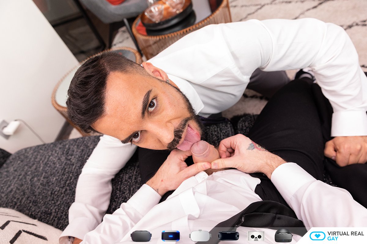 Every time there’s a special event, your boyfriend, Noel Santoro, can’t believe there’s just one proper suit for the occasion. He can spend ages choosing the outfit which fits best with his rock-hard ass. It’s no surprise that you have to wait patiently on the sofa for him to choose the right one for VirtualRealGay New Years Eve’s Party. And even though Noel won’t be 100% sure, truth is, just like his blowjobs, he will always be perfect for you. And if you are a bit late because you start fucking in doggy style, 2020 can always wait. Happy New Year, vrporners!