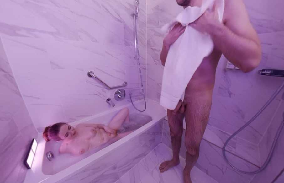 Analena is taking a bath - it is a HOT bath and it becomes hotter each minute. First she starts pleasing herself with her pink toy when she gets surprised by her step brother who is in a hurry to go to a date. Hejust wants to take a quick shower to fresh up. But Analena has a better idea to help him prepare for this date. And in the end she gets a shower too. What a nice side effect. Want to be the voyeur in this bathroom? Well, grab your VR glasses and enjoy.