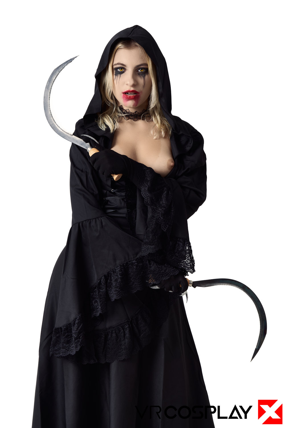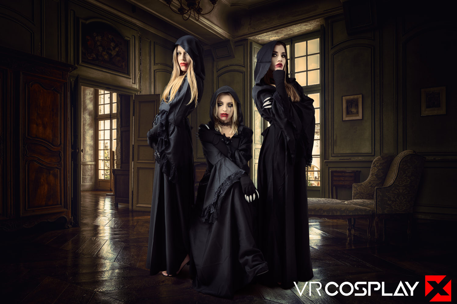 Wandering around in Castle Dimitrescu is nothing to dare, Winters. But when it is for your daughter Rose, you can do anything, if they let you. Dimitrescu Daughters capture you and like any hunter first, they want to play with their prey. It's a fact that they're scary, but you can also imagine their sexy bodies under their cloaks. Their rock-hard nipples and wet pussies. If this is how they want to play, why don’t you show how tough you can be? Grab your Quest 2, Vive, PSVR, or Valve Index, and fuck Eveline Dellai, Silvia Dellai, and Lilly Bella as Dimitrescu Daughters from Resident Evil Village in our new 180-degree stereoscopic vrporn cosplay parody only on VRCosplayX.
