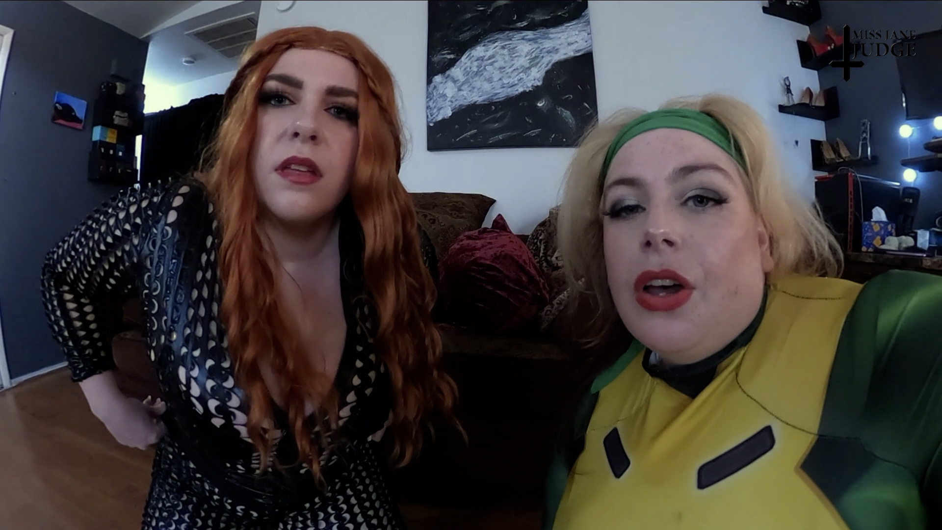 – featuring Megan Daw and Jane Judge, a cosplay parody scene with lesbian kissing, magic control, superhero battle, and two dangerous giantess heroines arguing over your tiny shrunken body filled with PIM particles on Science Friction. You’re satisfied with yourself, shrunk and hiding, filled with the stolen PIM particles- but then you see Rogue sneaking in. She must have tracked you here! You’re terrified until you see Black Widow sneaking in from the other door- and you’re absolutely petrified. The two babes see each other, and circle your tiny body arguing over who gets to take your power once you’re crushed out of existence. Tension mounts until, in an attempt to steal powers from Widow, Rogue kisses her! A taste of her powers and the two superheroines are focused again on what they need- to extract the PIM particles from you. They give you mean jerk off instructions while they talk about what they are going to do with this new source of energy- obviously you aren’t going to get to keep it. They bring you close and make you cum in each of their mouths, so they can swallow the particles themselves! Featuring Megan Daw and Jane Judge, edited by RickyxxxRails