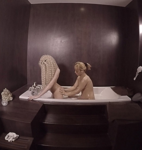 It’s a wet, sexy good time when Shania and Amelia get in the tub together and enjoy rubbing the warm, bubble-filled water, all over each other. The ladies take turns using their hands to gently, sensually wash and rub the other, turning each other on so much their nipples got hard. As this sexy lesbian bath continues, the girls stand up and wash all the soap and bubbles from their bodies continuing to touch and tease, intoxicated by each other’s bodies.