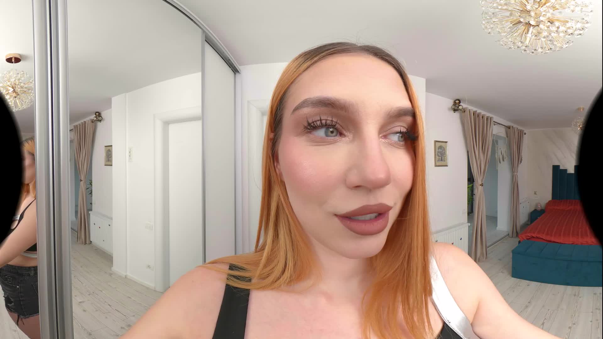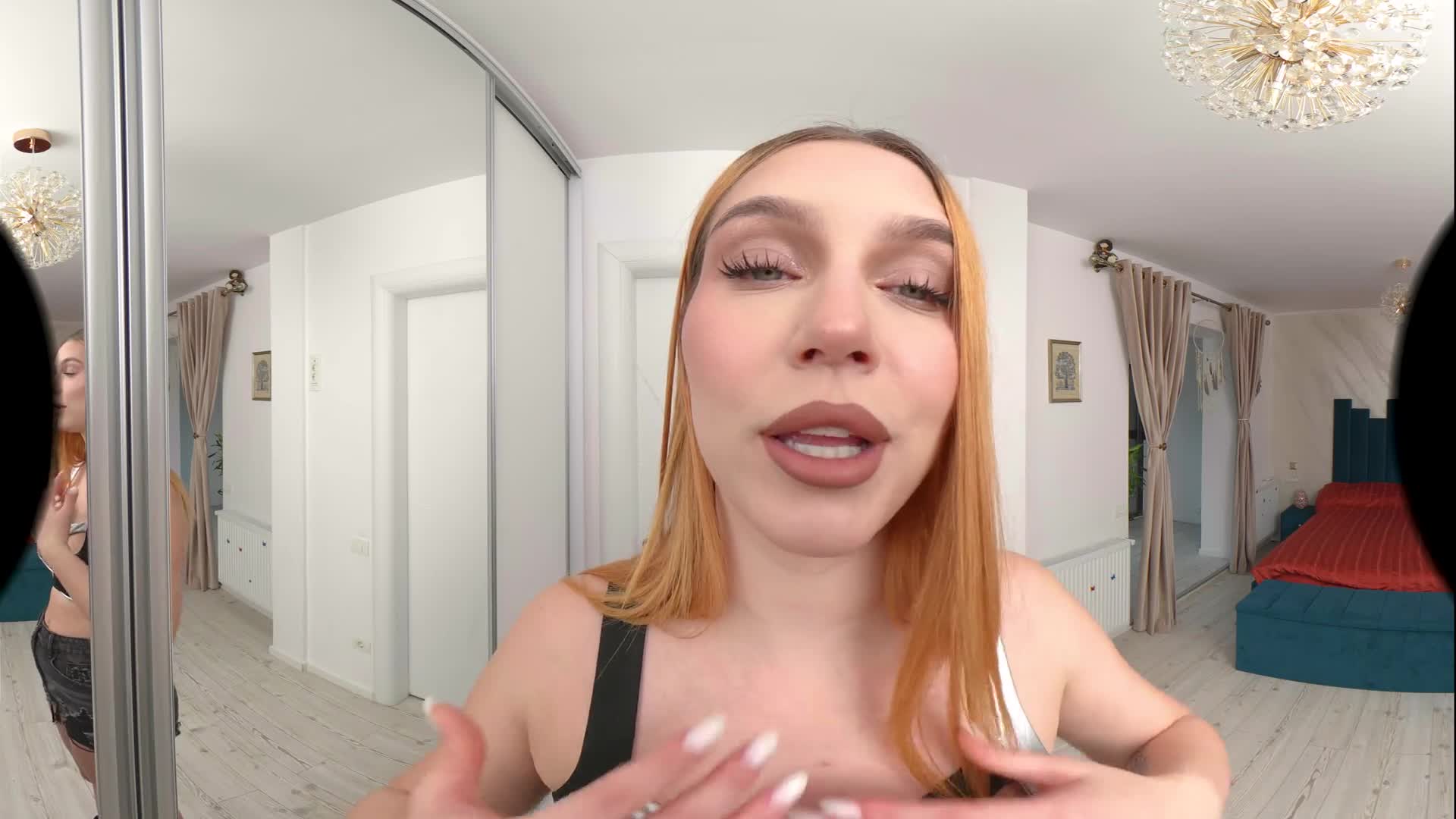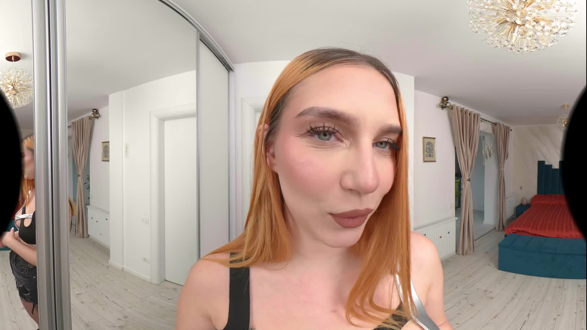 Leya is happy that you are no longer with your ex and wants to offer you a great experience. After a nice blowjob in front of the mirror, Leya started kissing you while lying on the floor, having you lick her armpits, big tits and perfect feet. She played with your nipples, did a nice handjob, then rubbed her wet pussy against your cock as she slid it inside her. Riding you in cowgirl and reverse never felt so good, so you decide it's time to have her creampied as she begs for your cum.