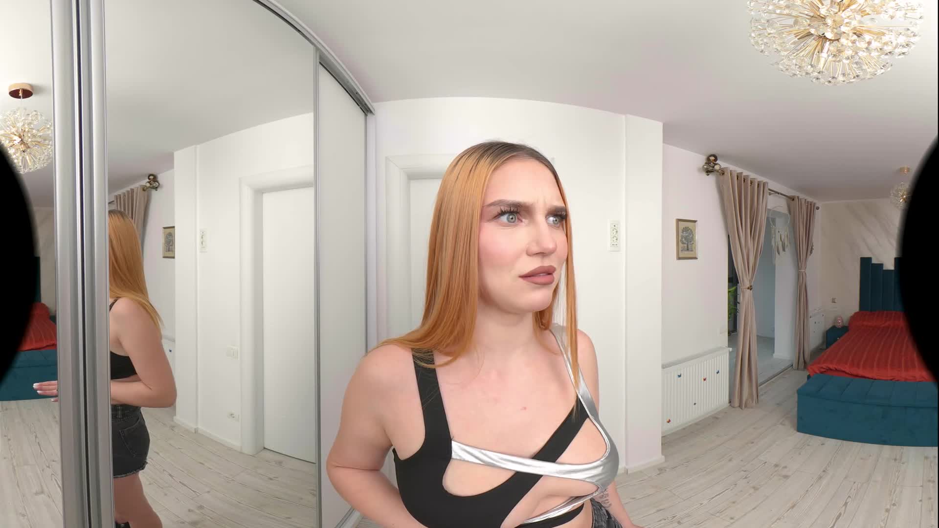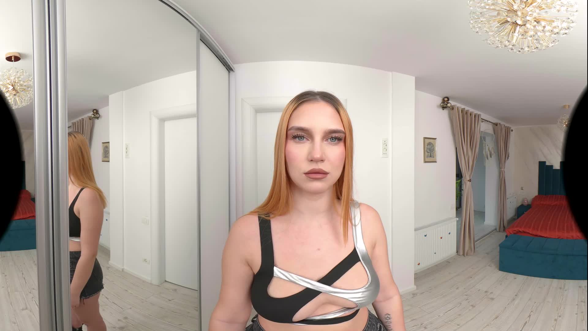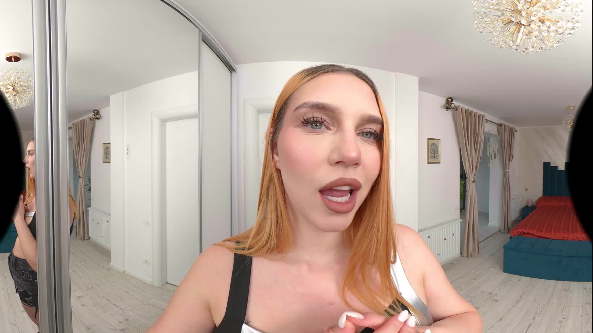 Leya is happy that you are no longer with your ex and wants to offer you a great experience. After a nice blowjob in front of the mirror, Leya started kissing you while lying on the floor, having you lick her armpits, big tits and perfect feet. She played with your nipples, did a nice handjob, then rubbed her wet pussy against your cock as she slid it inside her. Riding you in cowgirl and reverse never felt so good, so you decide it's time to have her creampied as she begs for your cum.