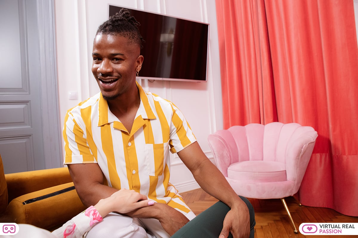 Your boyfriend Romeo thinks that you should try something different for this Valentine’s Day. He doesn’t want to buy you chocolate and flowers like every year, but he wants you to fulfil one of your deepest fantasies. As you agree, he gets up and goes to the door. He opens it and Gina Gerson enters the room. You know what he means now: you are going to have a threesome! The stunning woman starts to undress you. Once that you are naked on the sofa, she undresses herself and starts to take off your boyfriend’s clothes while they kiss. You are getting so horny by looking at them! She takes one of her hand and places on your pussy, touching you while Romeo licks one of her nipples. Then, both of them kneel and eat your pussy, exploring your clitoris with their tongues. They kiss from time to time, and they introduce some finger in you while they keep licking your clitoris. They kiss while he sticks his penis inside of you and your pleasure is very high! Gina kneels and licks your pussy while she is being fucked by Romeo. After, Romeo fucks you and licks Gina’s boobs while you masturbate her. More and more positions will come until the three of you have an orgasm!