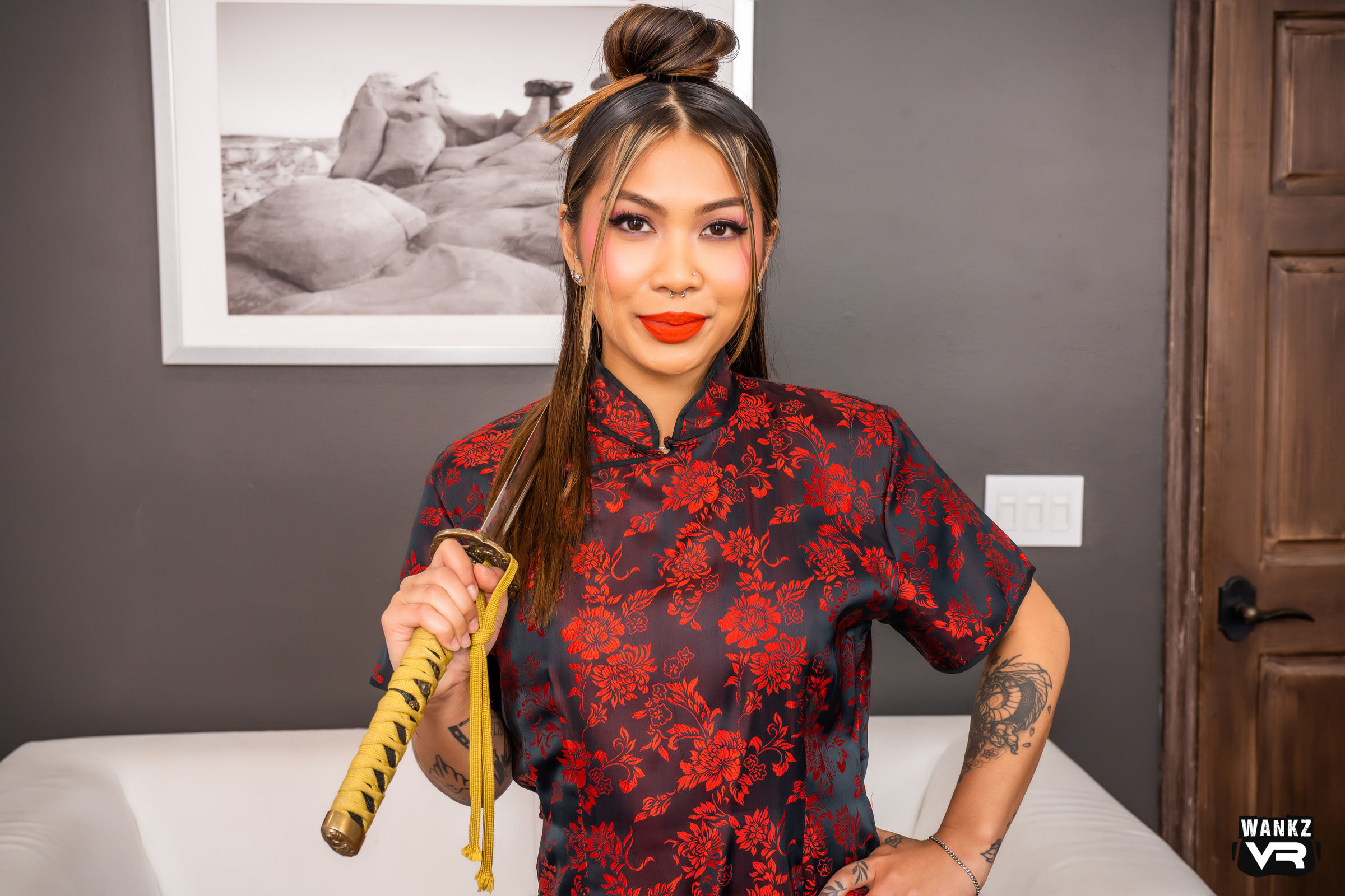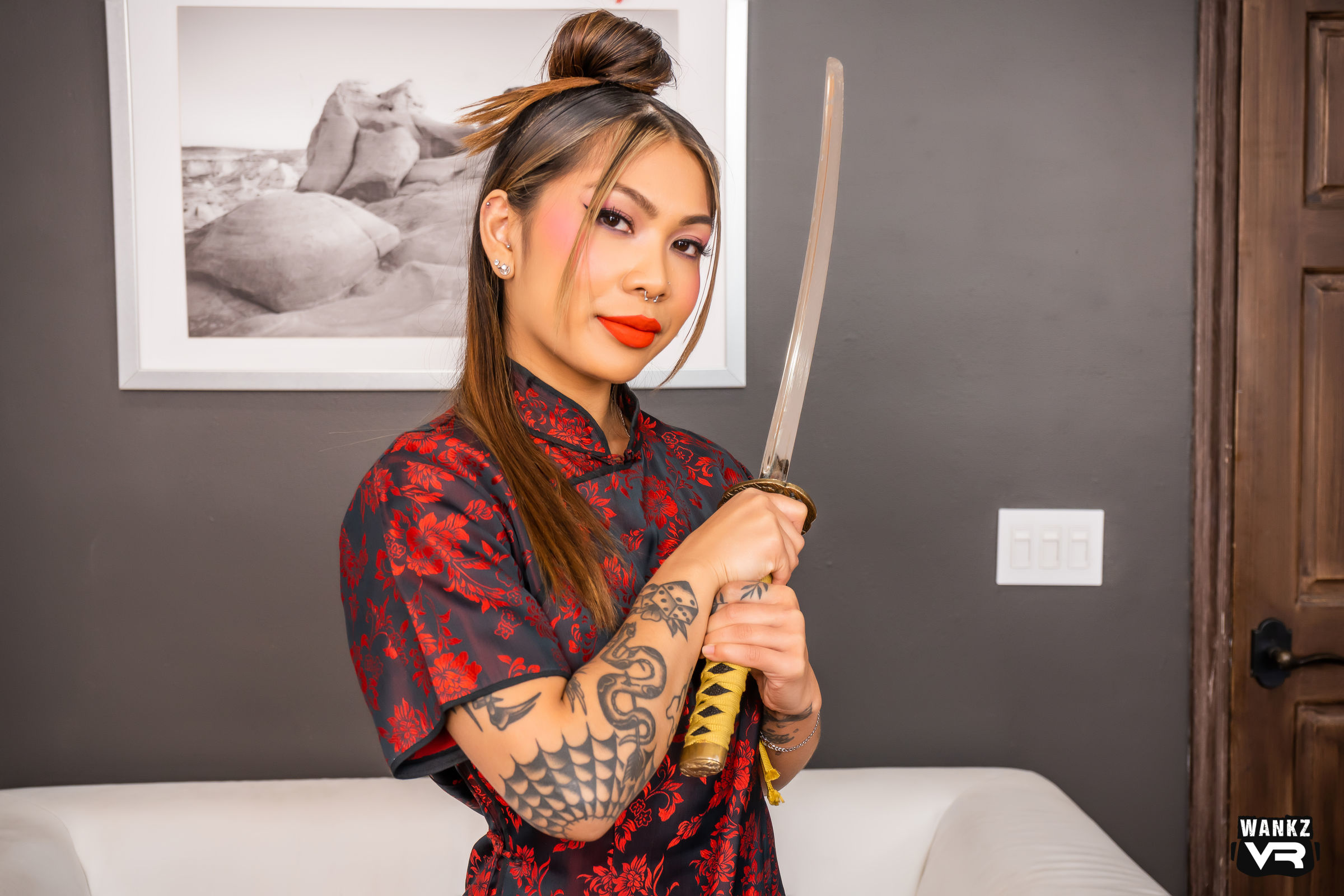 Do not be fooled by her politeness. Yumi Sin is on a mission to avenge her master and death is in the air and sea and earth. When she confronts you, will Yumi only see an opponent or will she see into your secret heart and hidden desires? The penis is mightier than the sword and Yumi will skip traditional swordplay for the mighty member in your robes. Sit back as Yumi takes control with her warm lips to give you a sensual blowjob. She will jump on top to take that dick for a ride in cowgirl then bend over so you can fuck her from behind. Flip Yumi over to give her the missionary pounding she craves then shoot your cum all over this Asian beauty! Will her thirst for vengeance be satisfied? Enter this VR porn experience with Yumi Sin to Sho her some love then Sho her your cum too.