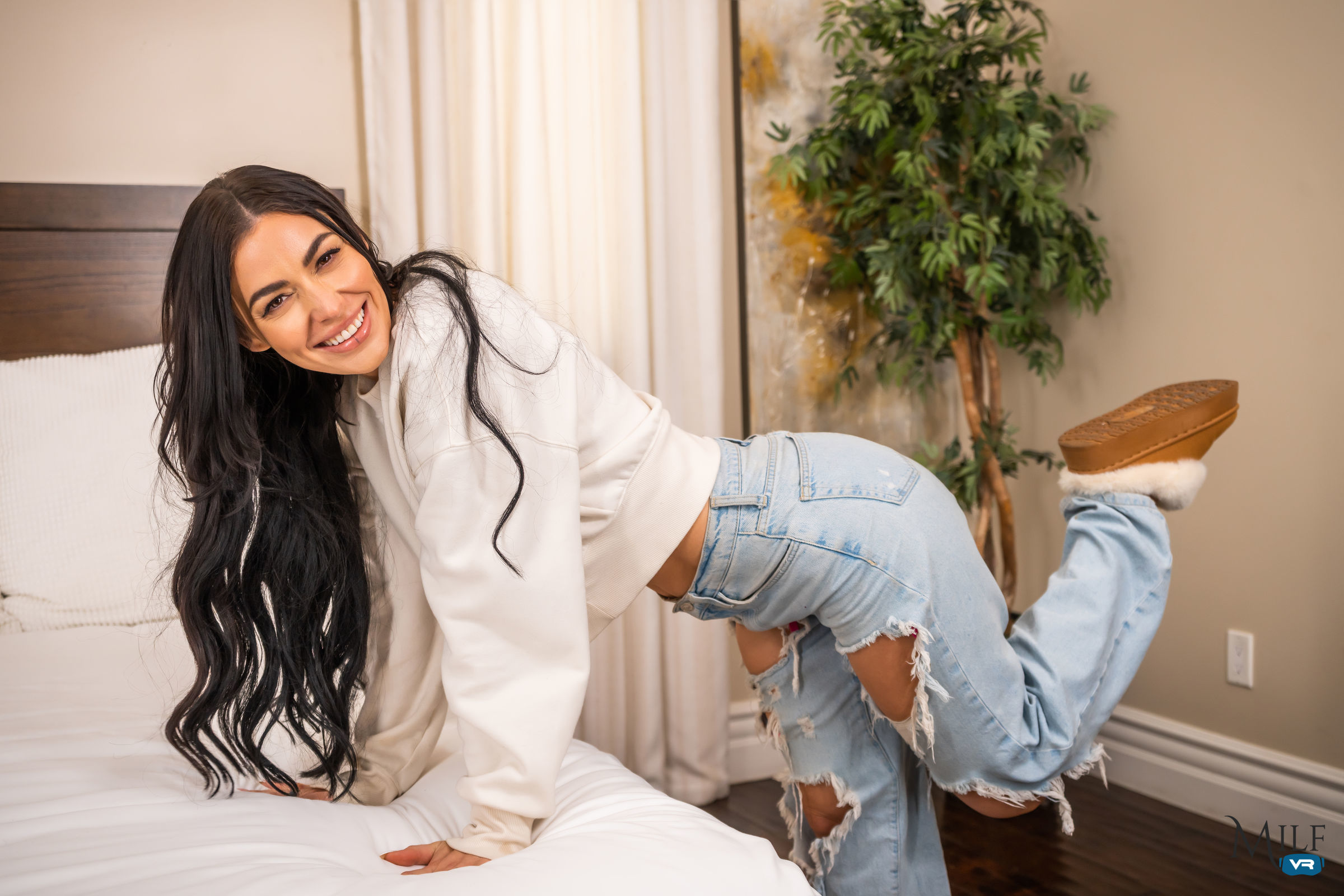 Your hot roommate, Venus Valencia is surprised you've never tried to fuck her! What gives? Venus is pretty sure your current relationship is getting in the way so she will turn up the heat to get your attention. This exquisite goddess will show you some love when she strips down to show off her sweet body. Venus is eager for a taste and will open up your pants to give you a blowjob. Will you indulge with Venus? Hell yes! Once you are hard as a rock, she bends over for some deep doggystyle fucking. Sit back as she jumps on top to fuck you in cowgirl then flip her over to pound that tight pussy in missionary too. Will Venus keep this XXX encounter a secret or did she have something else in mind? Play your part and get naughty with Venus in virtual reality.