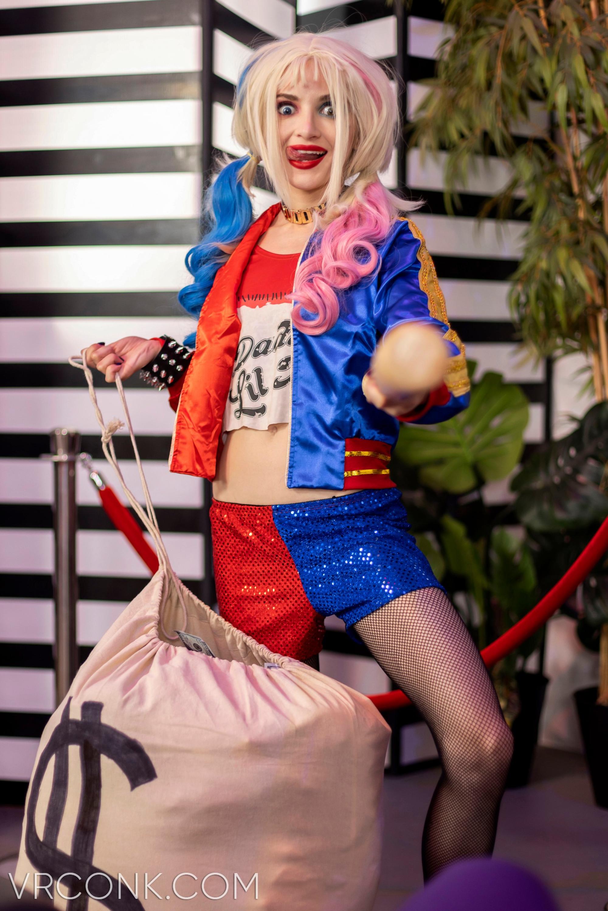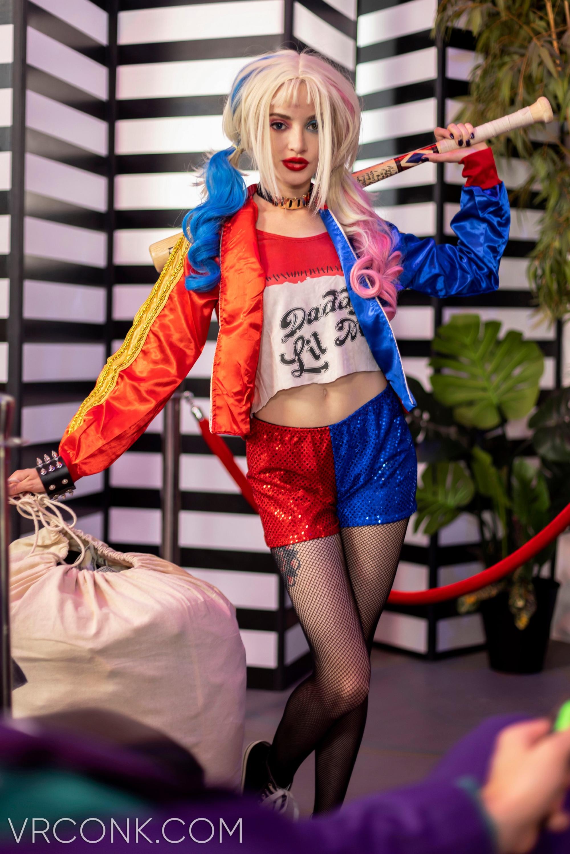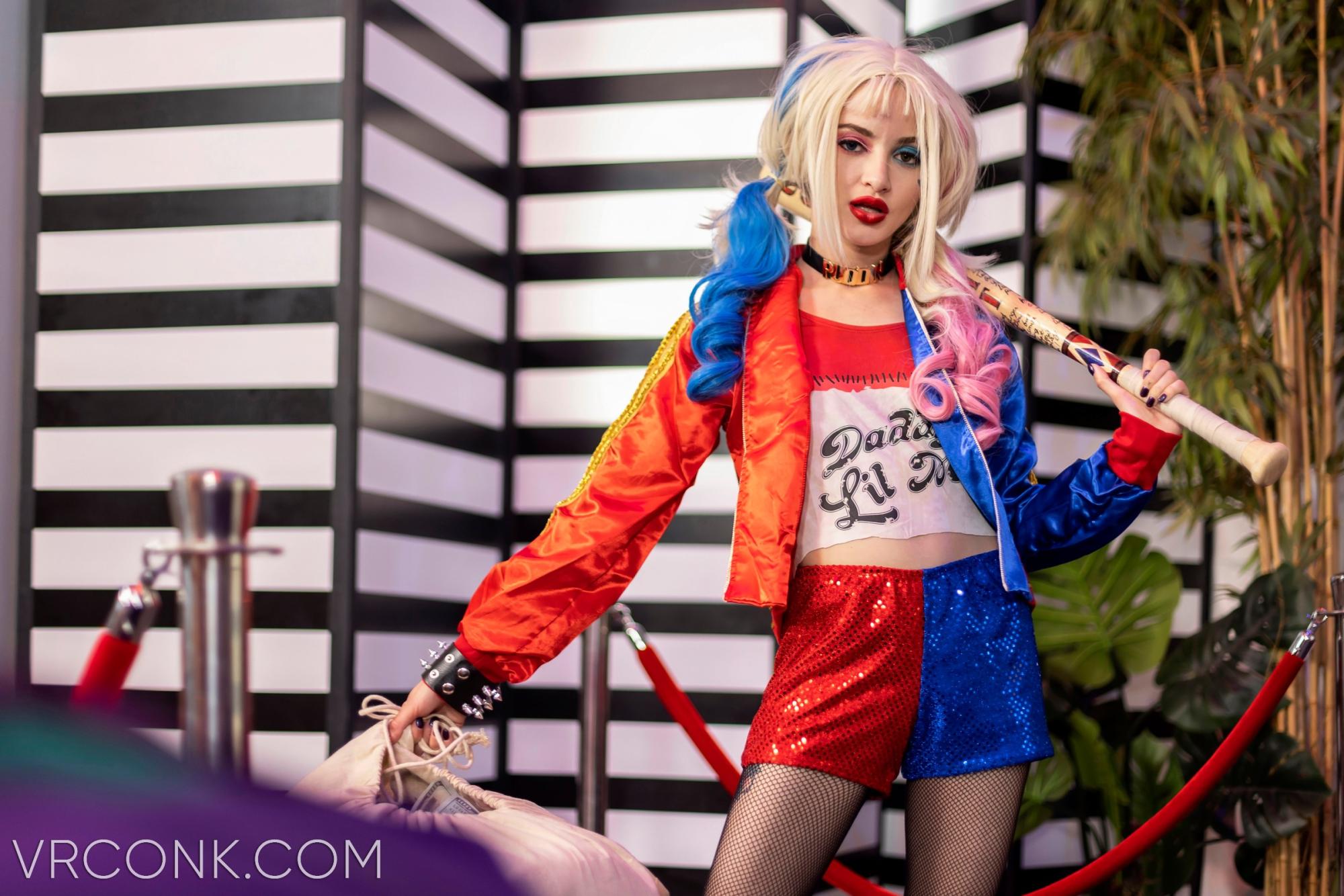 Okay, we are pretty sure that you have heard the name Harley Quinn at least once in your life – she is one of the most famous characters from the DC Comics universe, who at the same time is a great psychologist and… a sexy, slutty psycho. Indeed Harley is a colorful character and we were thinking about the place for her at VRConk.com for a while – and now, boom, we have got you covered, guys, with the help of our brand-new cosplay VR porn movie! Slutty Emancipation of One Harley Quinn is the latest parody VR porn scene virtual reality porn experience inside of which your favorite blonde VR porn vixen, Lola Fae, will become the abovementioned Doctor Quinzel (aka Harley Quinn) in front of VR Conk's virtual reality porn camera. This crazy bitch will be running all around town and doing heists and wrecking chaos – yet since her ex-boyfriend and criminal king of the city, Joker, has just escaped the Arkham Assylum, now she will have to explain to him why is she messing with his business. Oh, and not to mention that she was supposed to free him from that jail – and since she kinda betrayed him, he got pissed, and now she will have to try everything she can to make sure to calm his nerves. And guess what? As soon as you will wear your VR goggles, you are becoming the Joker himself – and you can watch how Harley (let us remind you – played by super-hot Lola Fae) is doing everything she can to avoid the punishment from your crazy and powerful hand. Are you ready to enter Gotham with VR Conk and fuck that tight little pussy of Harley's? She is waiting for you in 8K Ultra HD as we speak – so get that VR headset of yours running and let the game begin!