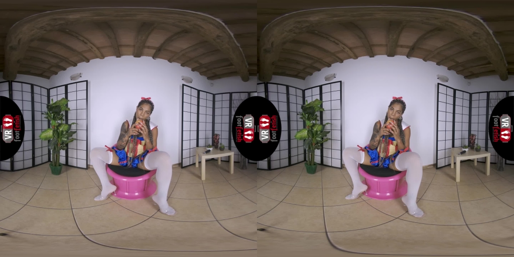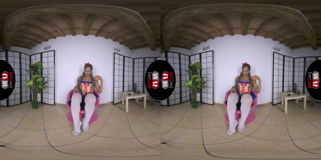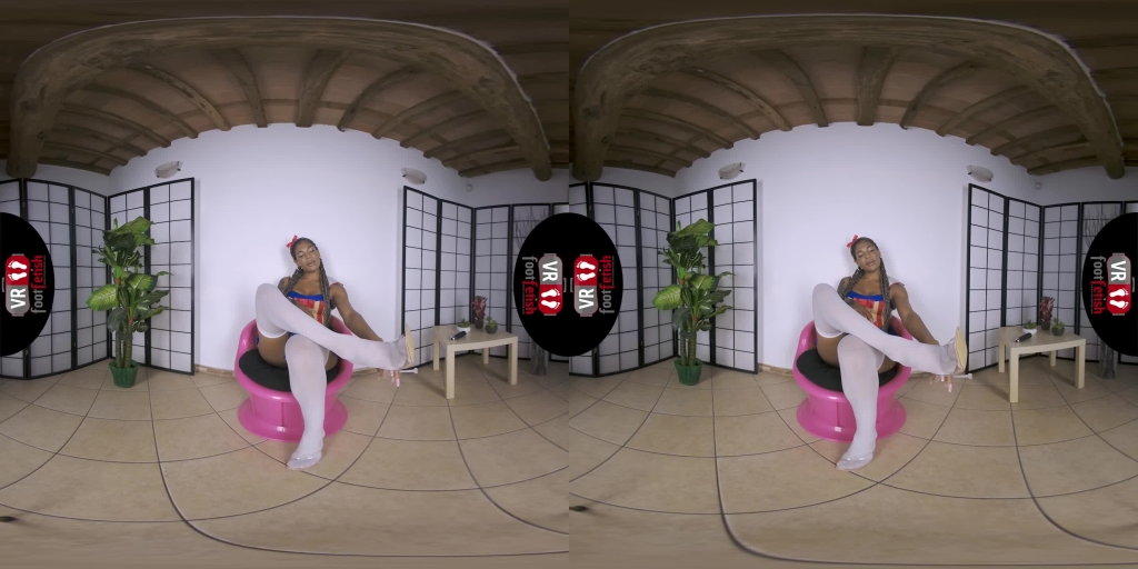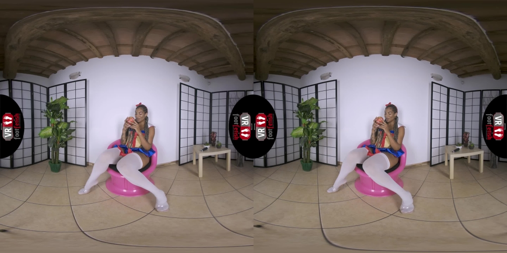 Take a deep breath and get ready to enter the finest virtual reality spectacle you've ever seen. We have Glory, a dark-haired ebony girl, waiting for you today, and she will make you joyful than you have ever been in your life. Glory has a lovely body and is clothed in a biancaneve outfit that will certainly please your desires. Enjoy her amazing fetish display in VR and be ready to see some excellent foot posing as well as some gorgeous masturbating. Enjoy