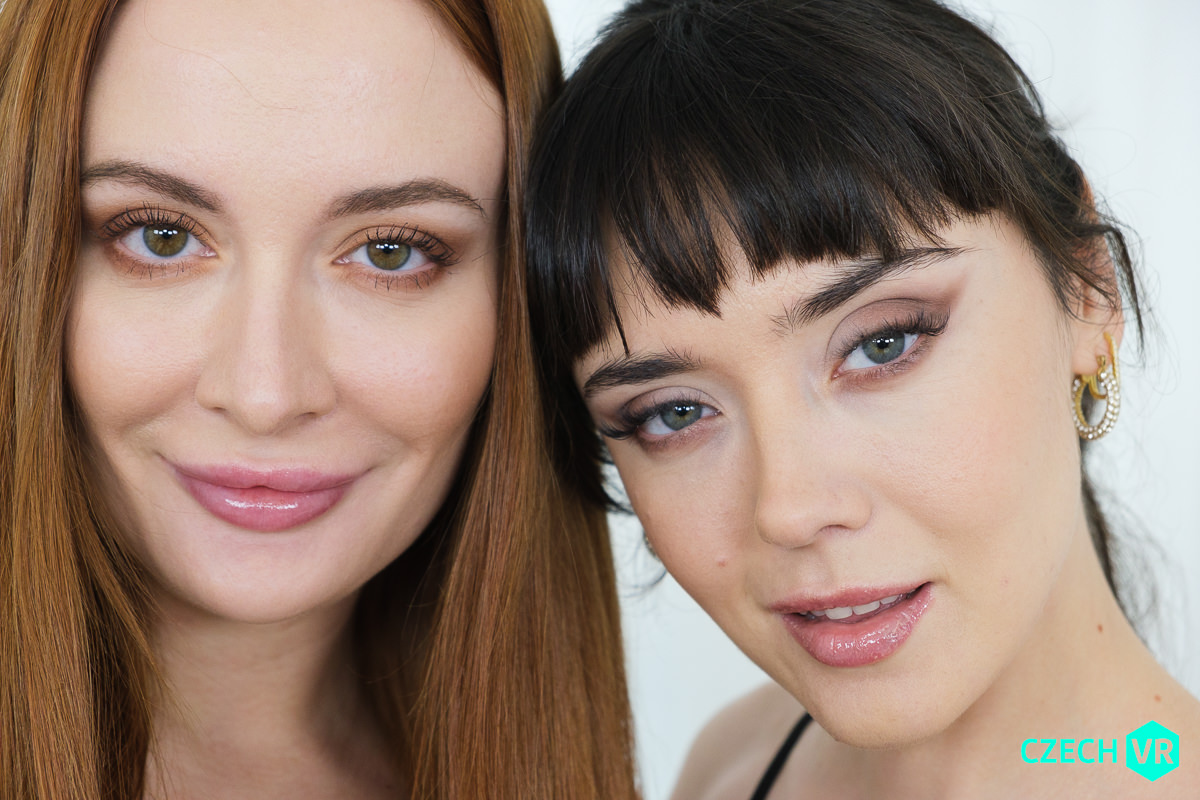 You have a choice today - would you prefer to fuck brunette or redhead? Having these two gorgeous babes tease you, you realise the choice is more difficult than you expected. So how about not choosing at all and fucking both of them? After all - you see no problem with letting the girls share your cock.