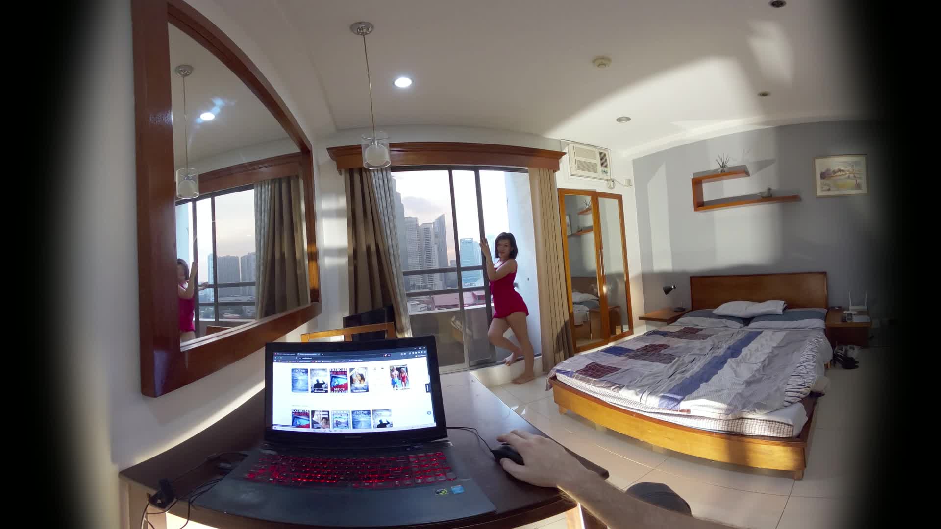My concentration is utterly broken when my mischievous friend Tanya decides to join me for some unscheduled after-hours fun in my cramped hotel workspace.