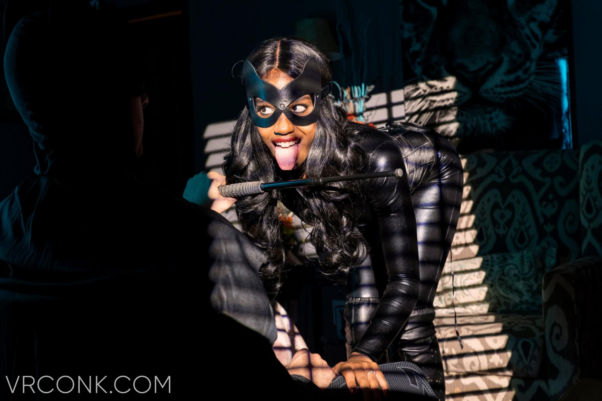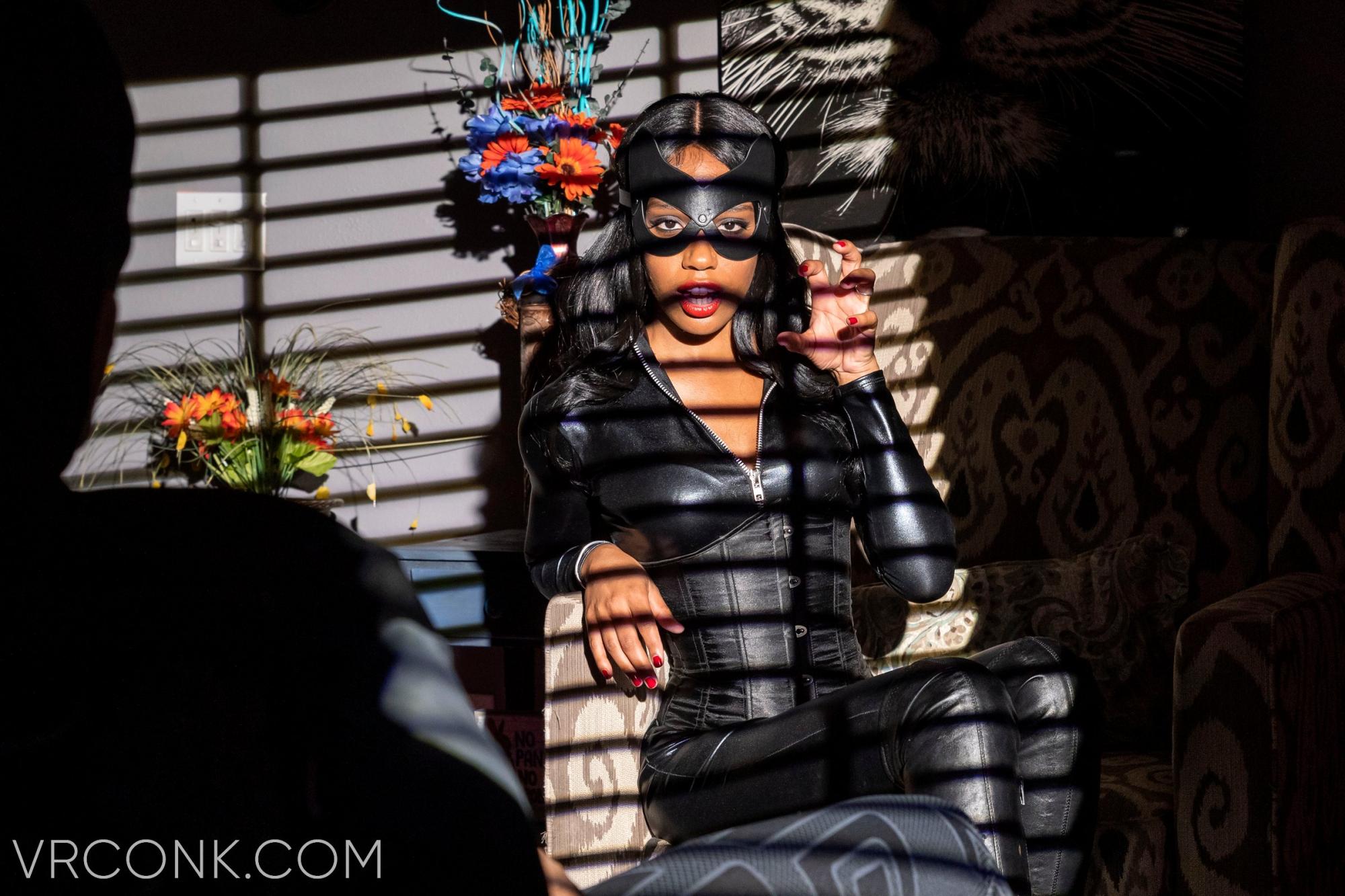 There is no way that you have never heard about the iconic character of the Catwoman – and since the latest Batman movie has just been released, we just had to commemorate that sexy kitty on behalf of our new cosplay VR porn movie. The Bat And The Cat is the newest parody VR sex scene at VRConk.com on behalf of which one-of-a-kind ebony VR porn star Lacey London has become the abovementioned Catwoman. Wear your VR goggles to become the Batman himself and pay a visit to Catwoman's little apartment – to deal with some… business with her. The point is that lately Lacey has been a bad, bad kitty, and she has deserver a punishment – and who if not you, the dark avenger, could punish her for her crimes? The problem is, though, that she can be really, really charming if she wants – and indeed she will try to use a lot of different methods to change your mind and make you forget about everything bad she has done lately. Will you forget about your plans and just enjoy the evening with that sexy little kitten? Or maybe you want to abuse her methods, have a blast with her tight little pussy, and then get her to jail anyway? The choice will all be yours – just wear your VR goggles now and watch The Bat And The Cat at VR Conk to become a part of this unique fantasy in the wonderful DC universe! Gotham indeed is a city of crime and punishment – and today you will have to decide whether the punishment gets to be rough, or maybe a little bit more… enjoyable, given the fact that Catwoman's throat and pussy are so tight, wet, and sweet… The Catwoman is waiting for you as we speak!