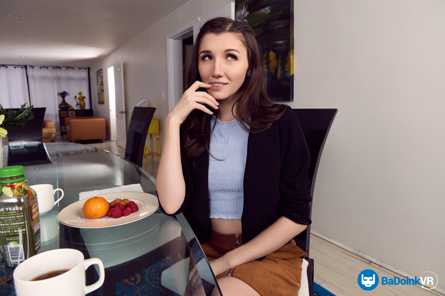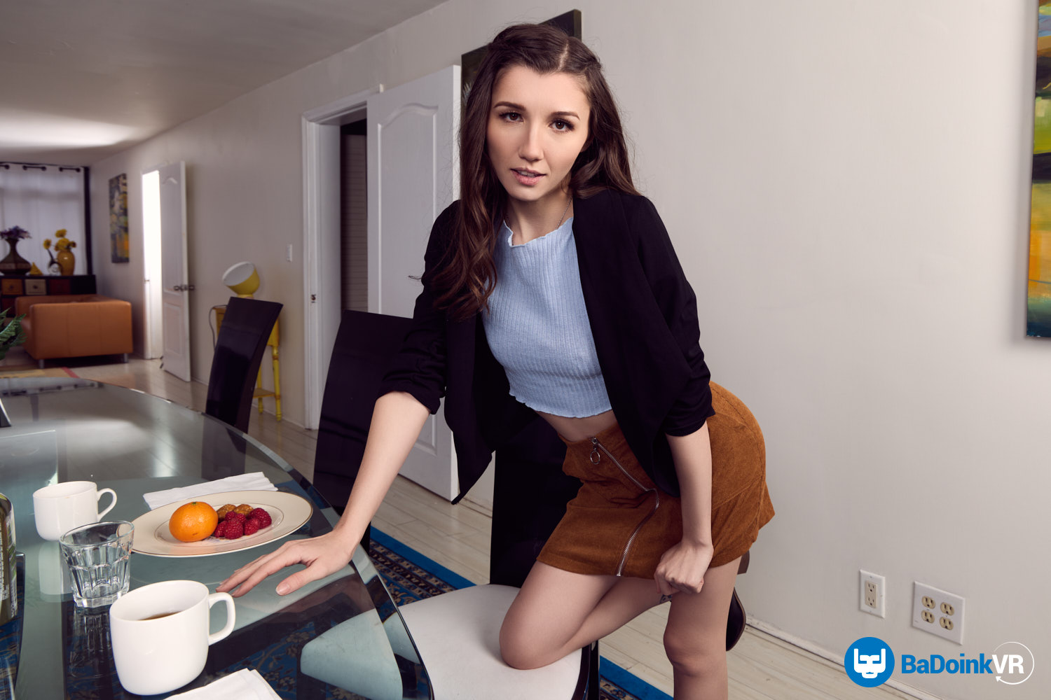 Wow, what a date night that was! You and Maya Woulfe had a crazy evening together, it was the first date and sparks were flying. You woke up at her place wondering when the next time you'll see her is, because you've got to get off to work. That's when she tells you - she's starting a new job today and it's where you work! What are you gonna do? She's technically gonna be your boss, but the way she's looking at you... Things may get a little complicated if this continues. Anyway, as Maya points out she's technically not working there for a couple more hours, so you've got time to fuck each other senseless before HR can get involved. Go get strapped in and see just how intimate you can get before things get complicated in this 8K VR porn scene starring megababe Maya Woulfe!