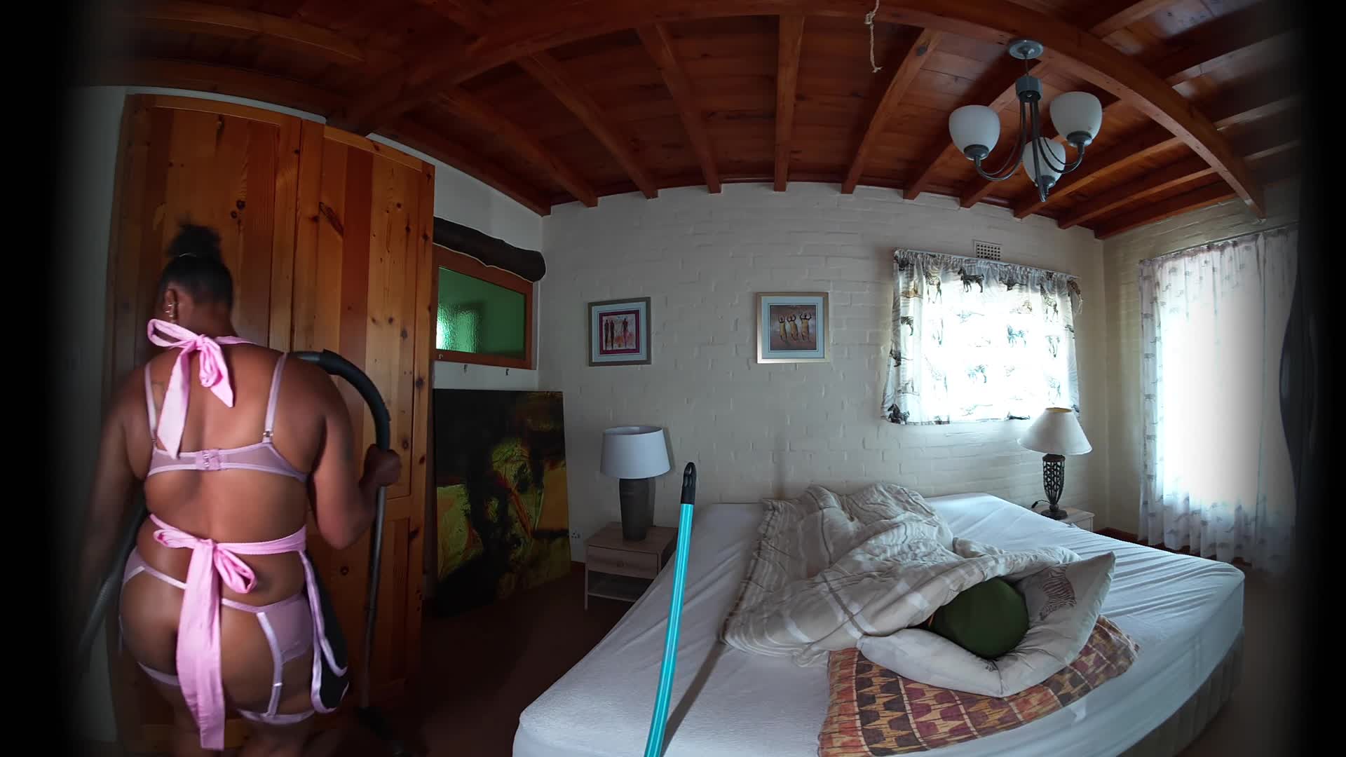 Your lazy morning takes a wild turn when Pam, the stunning amateur cleaning lady, arrives. With her curvaceous body, silky coffee-colored skin, and a beautiful round ass you can't ignore, she needs you to get out of bed. But her "encouragement" becomes increasingly intimate, turning a simple chore into an unforgettable, immersive encounter. Get ready for a realistic POV fantasy where you're the reason the sheets really need changing.