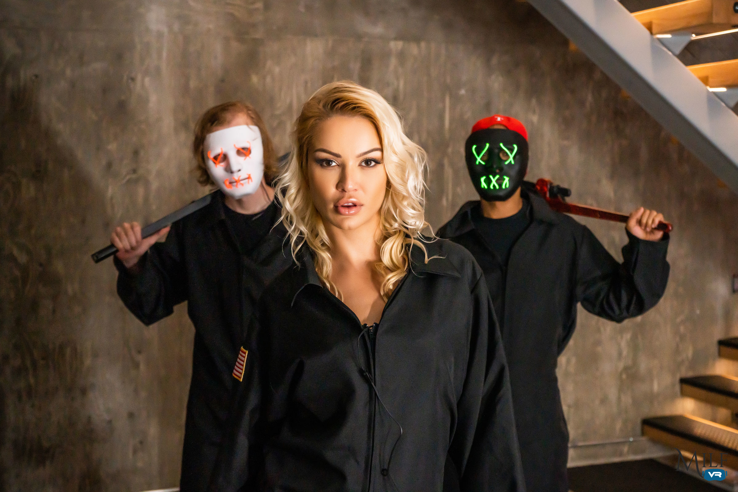 As the world gets ready for a big release, you get ready for a release of your own. You'll get comfy and feel safe and sound inside and away from the chaos because you remember all the good the purge can do. Be part of a pulse-pounding tradition and hold the fort when Cherry Kiss and her associates come knocking. Will they take full advantage of this holiday or will Cherry have something else in mind? Before she turns your world upside down, she will send her partners in crime away for more shenanigans. As Cherry strips down, she will pounce on your dick and ride on you in cowgirl. Give her the satisfaction she craves and fuck her missionary and doggy style before you pump your privileged jizz deep in her pussy. Be part of this XXX parody using your VR headset.