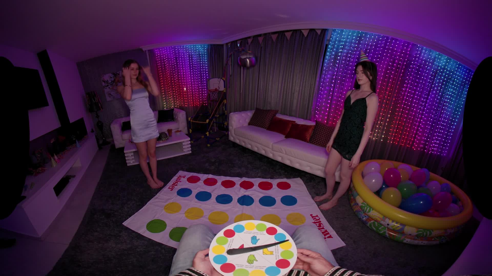 It’s Partyhour. Hot Pearl right on time for the twister mini game. Left foot on blue, right foot on red, your hands on her chest.