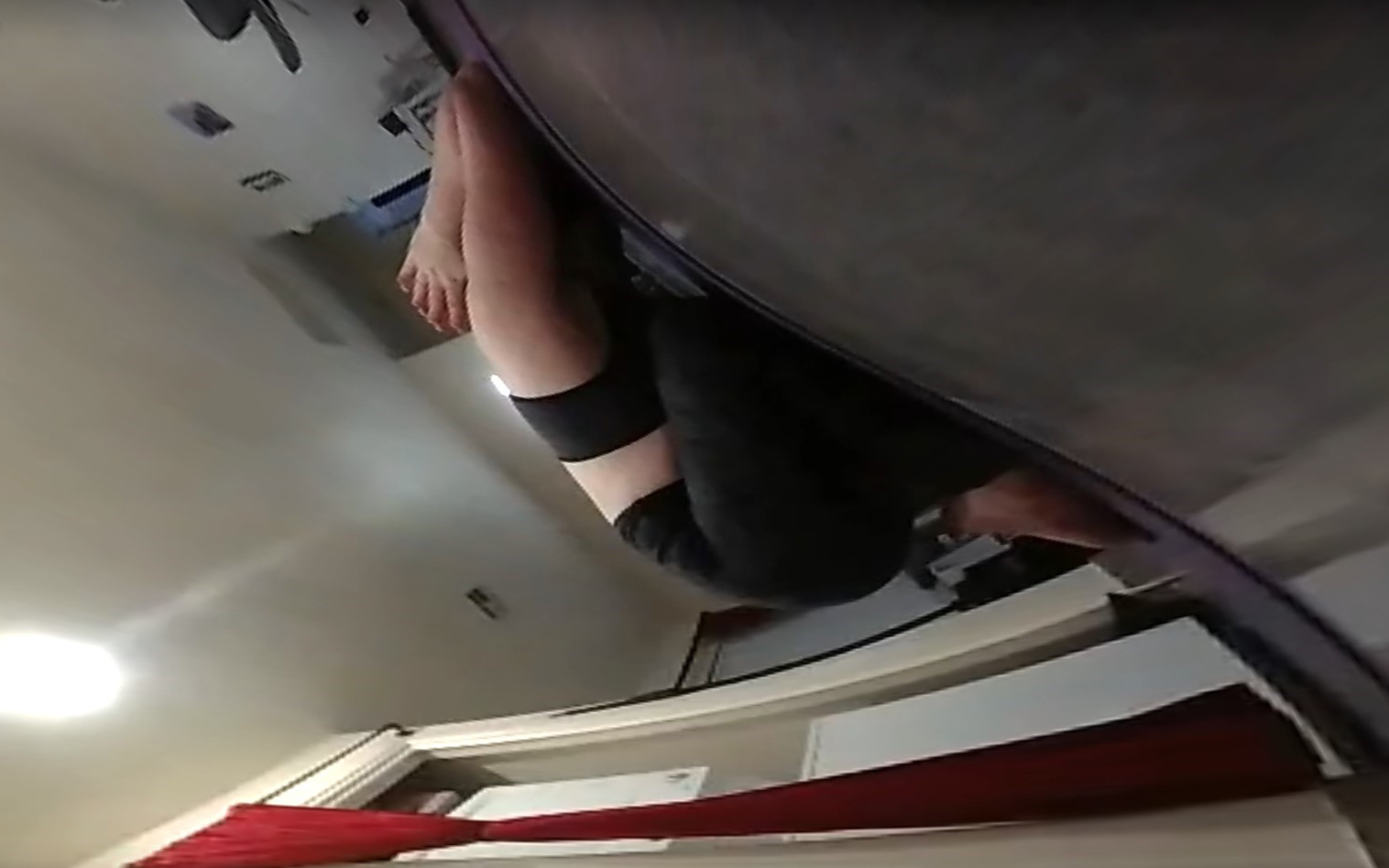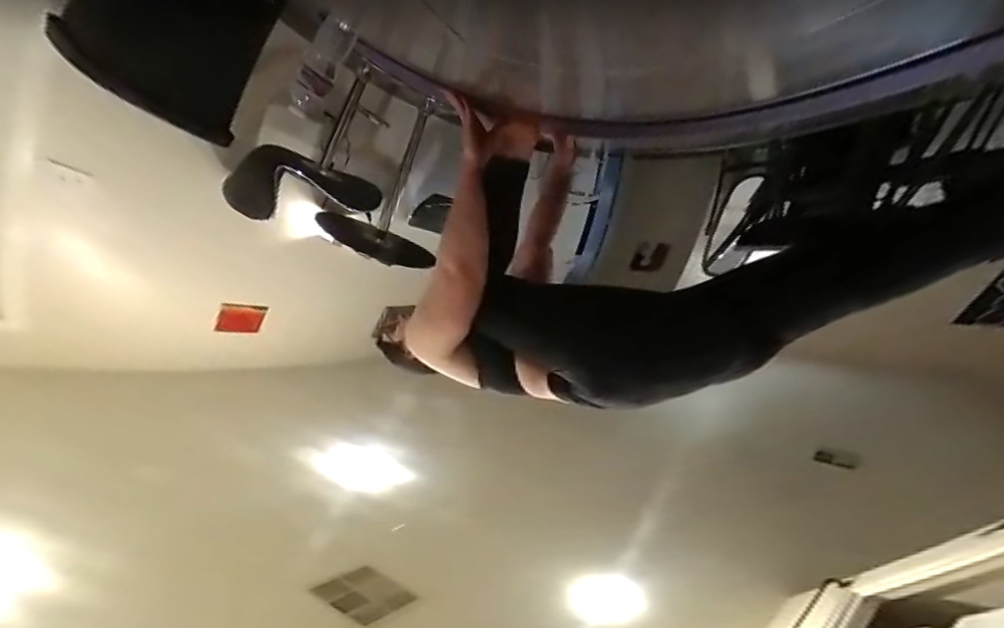 Jane puts in her airpods and rolls out her yoga mat for practice. She doesn’t notice you spying on her! You watch her move her body in a yoga routine, staring mesmerized by her tight pants and big tits. She stretches and flexes, relaxing into her practice totally unaware of the perverted little eyes on her. She rolls her mat back up when she’s finished none the wiser.