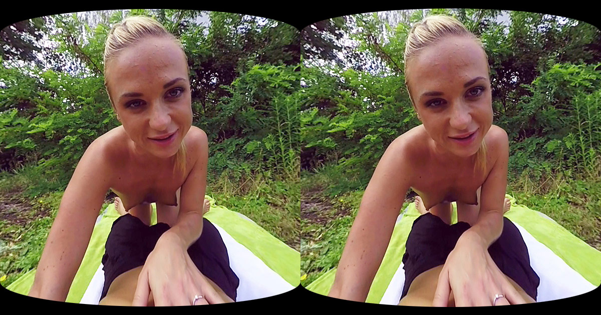 Get ready for some outdoor fun without having to worry about some stranger unexpectedly walking in on you! Summer is here and we decided to take our VR porn camera outside, so you can enjoy having sex with a cute girl somewhere else than just an inside room. We asked Vinna Reed, a smoking hot blonde with tiny, but perky breasts, to join us and give you the experience you deserve. So take your VR porn helmet out and get a fresh dose of perfectly great outdoor sex without ever having to step outside!