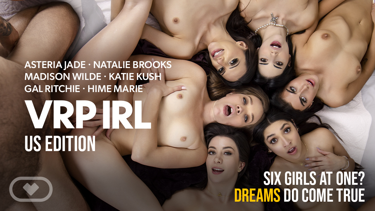 The hype is real: today is the day of the exclusive Virtual Real Cams livestream orgy with Alex Legend and six top US performers: Asteria Jade, Gal Ritchie, Hime Marie, Katie Kush, Madison Wild, and Natalie Brooks. Watch as the girls tease, undress, and start playing with each other and you. Enjoy a wild and immersive orgy in full VR, complete with blowjobs, multiple positions and nonstop energy with six of the hottest girls!