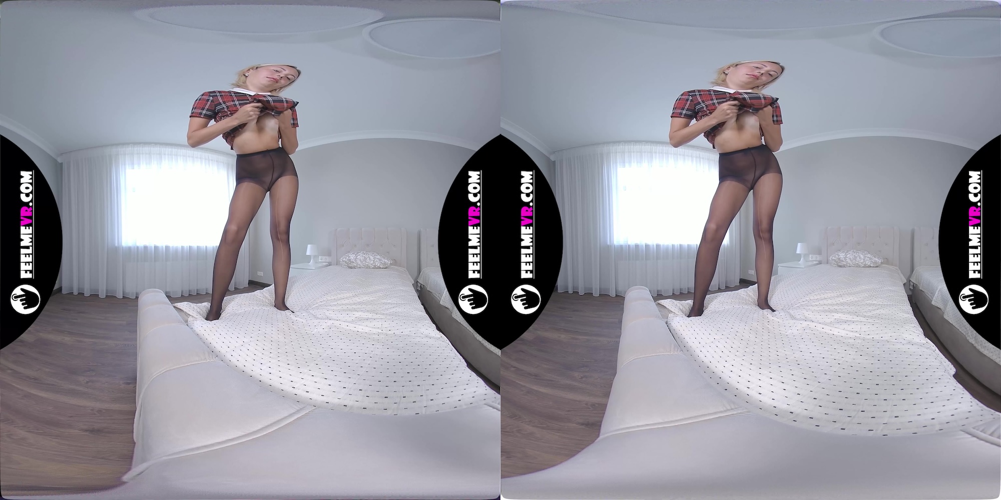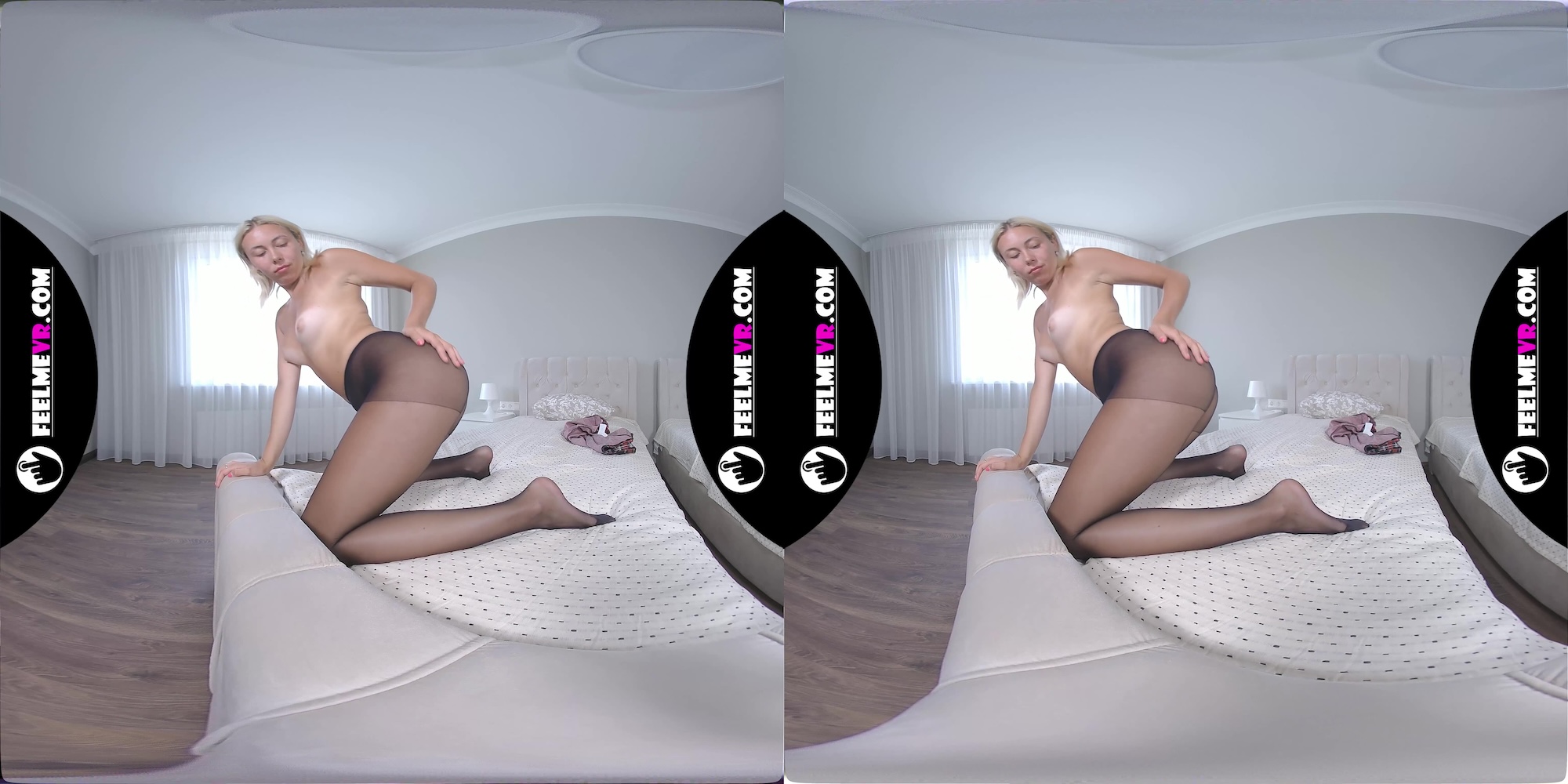 VR180 Blonde Teen With Small Tits Nico Rips Pantyhose