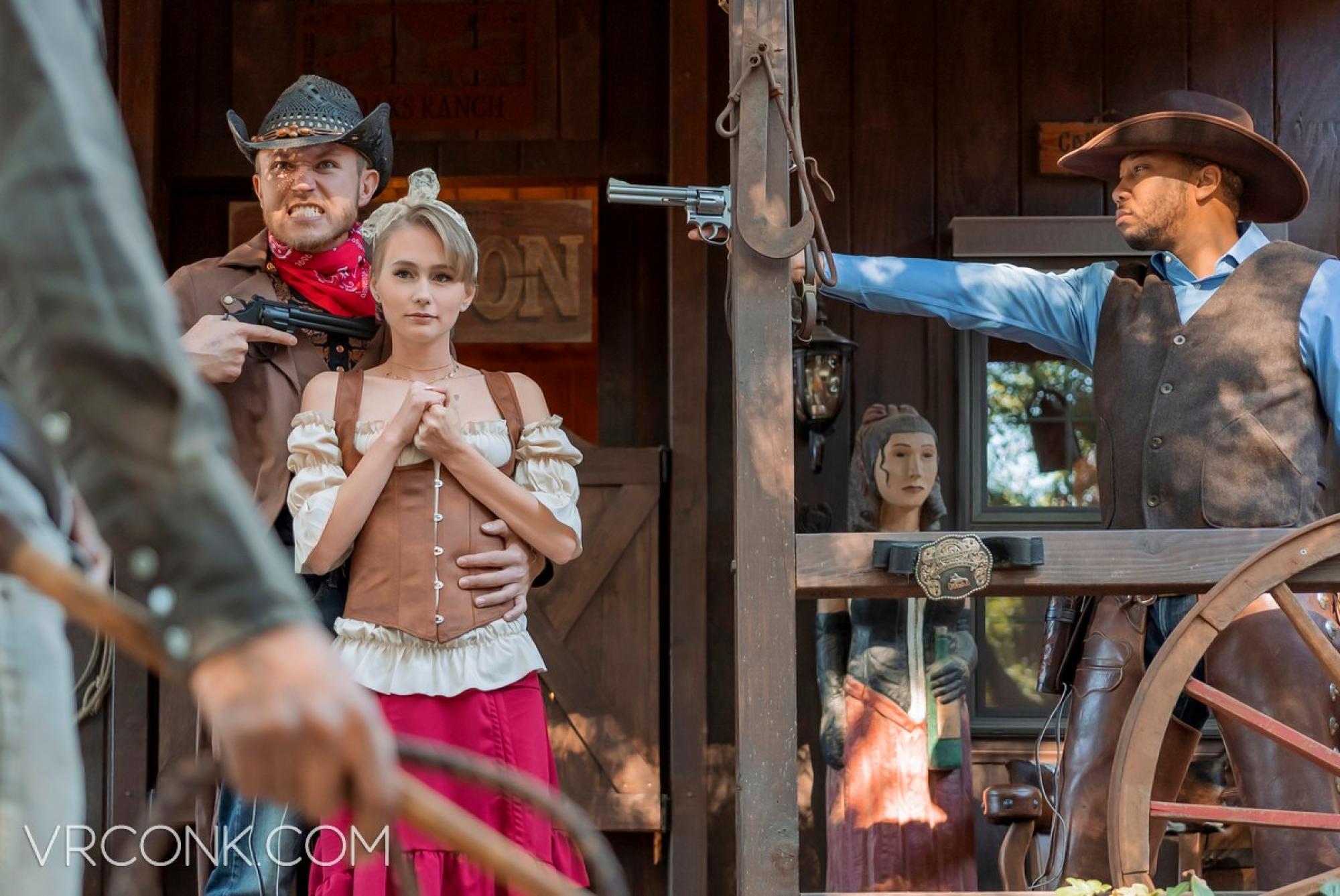Ok, buddy, it was about time for the premium producers of VRConk.com to pay a visit to the Wild West – and so we did on behalf of our brand-new uniform VR porn movie called West Gone Wild! On behalf of this stockings VR porn scene, we are turning you, every single of our devoted fans, into professional bounty hunters who are about to finish yet another of their errands today. You will be chasing a bad, bad guy, who will eventually take one of the girls a hostage to save his ass – but since you will not be working alone, and you will have a trusted partner by your side, you will outsmart him and rescue the girl from his grasp! Now you will both have a huge reason to celebrate, as you have just finished a valuable request, and a beautiful, grateful girl by your side (played by a skinny VR porn starlet, Alicia Williams) – this day could not get any better, do not you think? And you are wrong! As it will quickly turn out that Alicia will be so grateful that she will decide to reward her hero with her perfect body – giving you a deep dick-sucking session that will quickly transcend into an all-amazing hardcore sex situation. Wear your VR goggles to appreciate everything that this all-amazing VR porn star has to offer – she knows that without you she would not be here with us anymore, so she will be more than happy to give you everything you will ask for as a token of her gratitude. Fuck her hard, cum on her cute, petite face and give her a whole lot of your hot load everywhere you want – she will be even more grateful if you will make her cum together with you, so you can become her hero one more time if you will bang her hard enough!