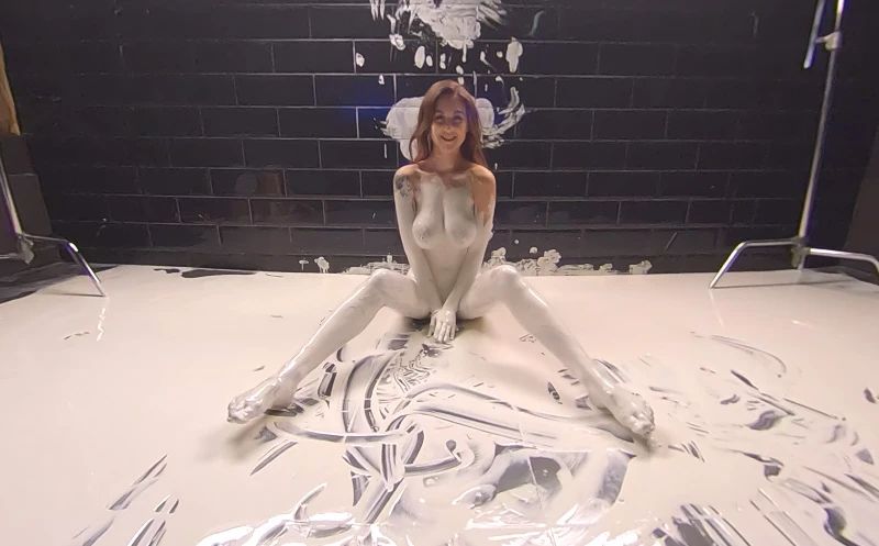 LessyQ's body is a work of art onto itself so it only makes sense she would want to use it to make a different kind of art. Stripped fully nude, the fit, incredibly sexy redhead poured paint all over her floor then rolled around in it. Once her big tits, tight ass, shaved pussy, and entire body were covered in paint, she pressed her body against the black wall, leaving an imprint of her big tits and tight frame. This drop dead gorgeous girl was having a blast rolling around in the paint and pressing against the wall. The paint felt so good on her body, she even found herself getting turned on as she played.
