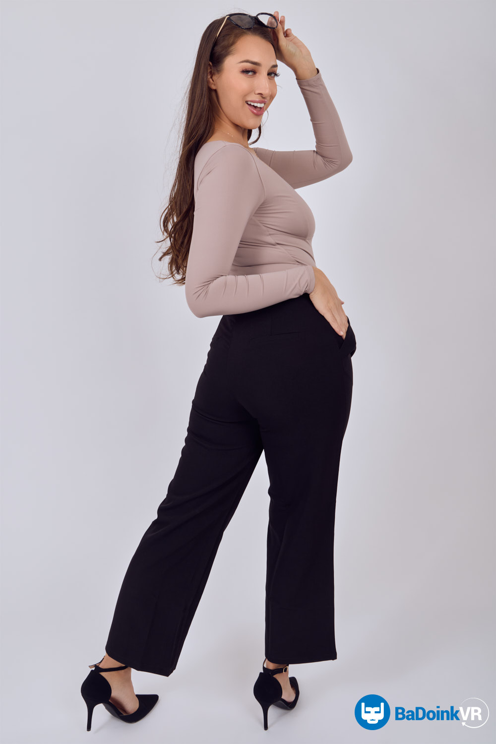 Sometimes she works for a fee, and sometimes she works pro boner! Bella Roland is your incorrigible firecracker of a lawyer. Since you hired her she’s got you everything you’ve wanted. She knows the ins and outs of every law, she knows how to lubricate sticking points in negotiations, and she knows just when to ride a case harder to get what she wants. Suffice to say, every time you visit her office, you’re more and more attracted to her. Yes, her moral compass may be pointing a little off north, but you’re no judge of character. She’s got a fantastic set of natural tits that are begging to be caressed, squeezed, and slapped. With that extremely seductive look she gives, she tells you she wants a little something extra this time, and who are you to say no? Strap into your Apple Vision Pro, Meta Quest 3, or Valve Index and fuck your incredible lawyer Bella Roland all over her desk and office in this immersive stereoscopic VR porn.